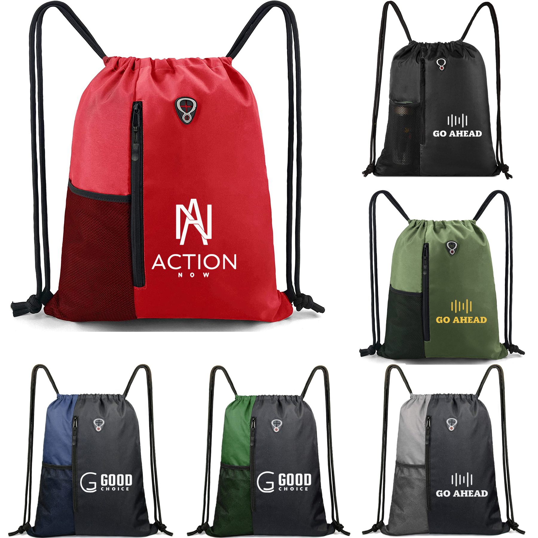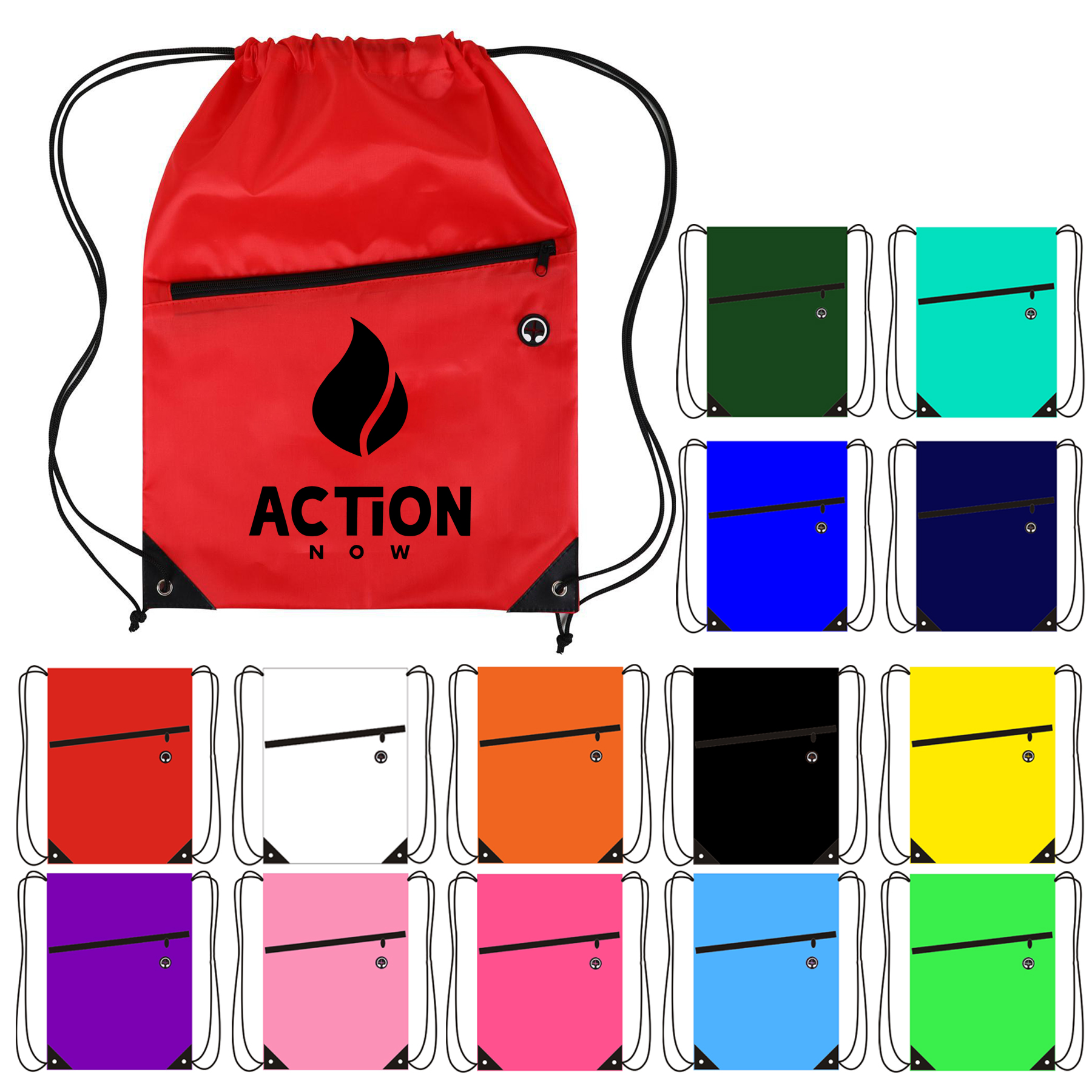 420D Polyester Drawstring Backpack w/ Front Zipper Pocket -EFAA098