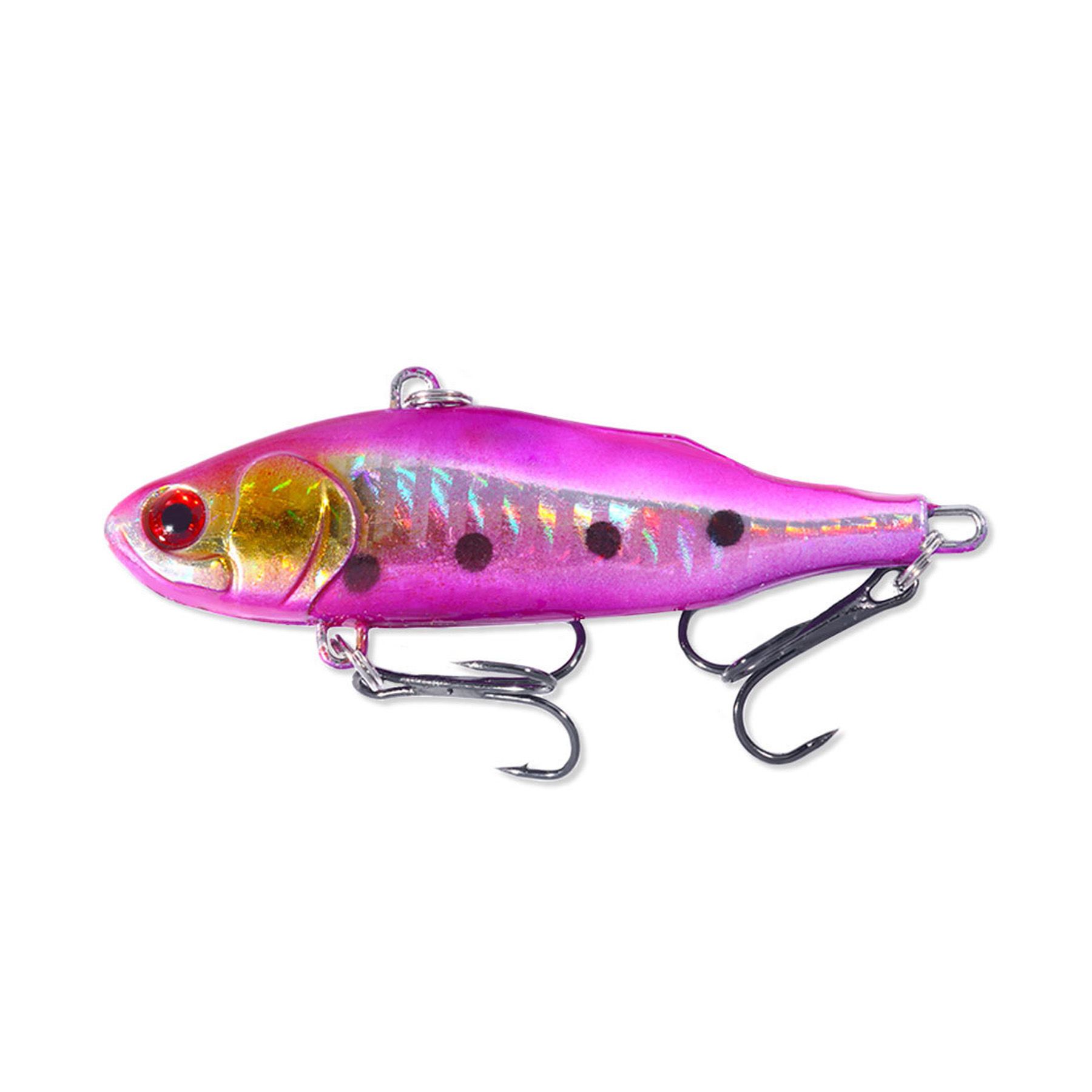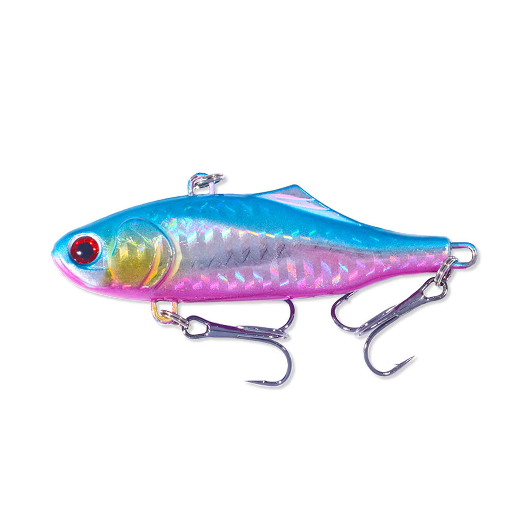 Full-layer Vibrating Bait is crafted from durable ABS with a streamlined body and internal steel ball for far casting and tight vibration.It features realistic 3D eyes and brilliant color finishes,plus two sharp treble hooks for enhanced catch rates.With two tow points for variable vibration frequency and retrieve speed.
