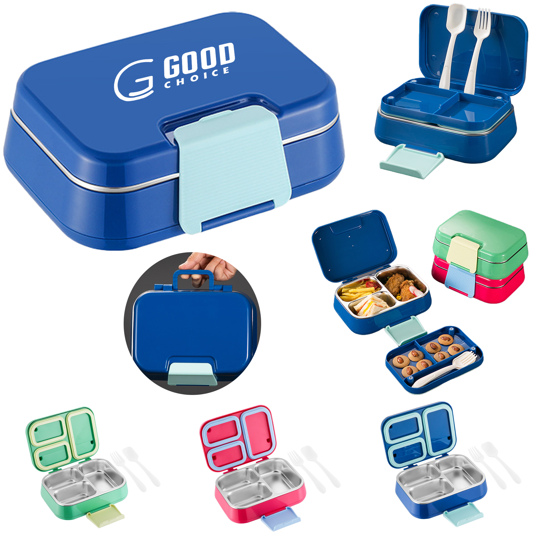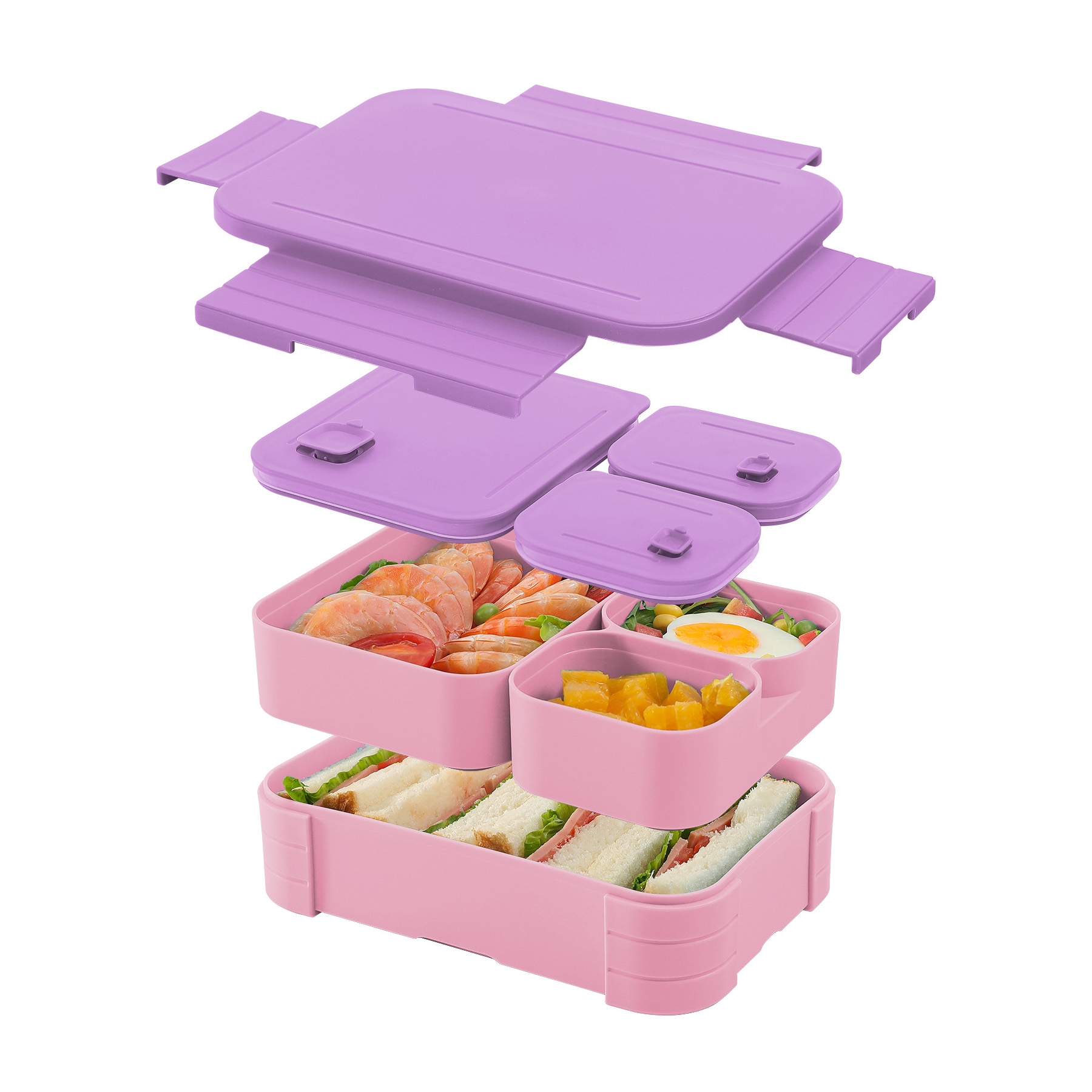 Lunch Box Kids Bento Box is molded from food-safe,BPA-free plastic.An outer shell with four locking flaps compresses a silicone seal,giving 360° leak protection,while three removable inner trays let you build up to six neatly divided portions.The smooth corners rinse clean or pop straight into the dishwasher;lid off,the trays also handle freezer chill or microwave heat.